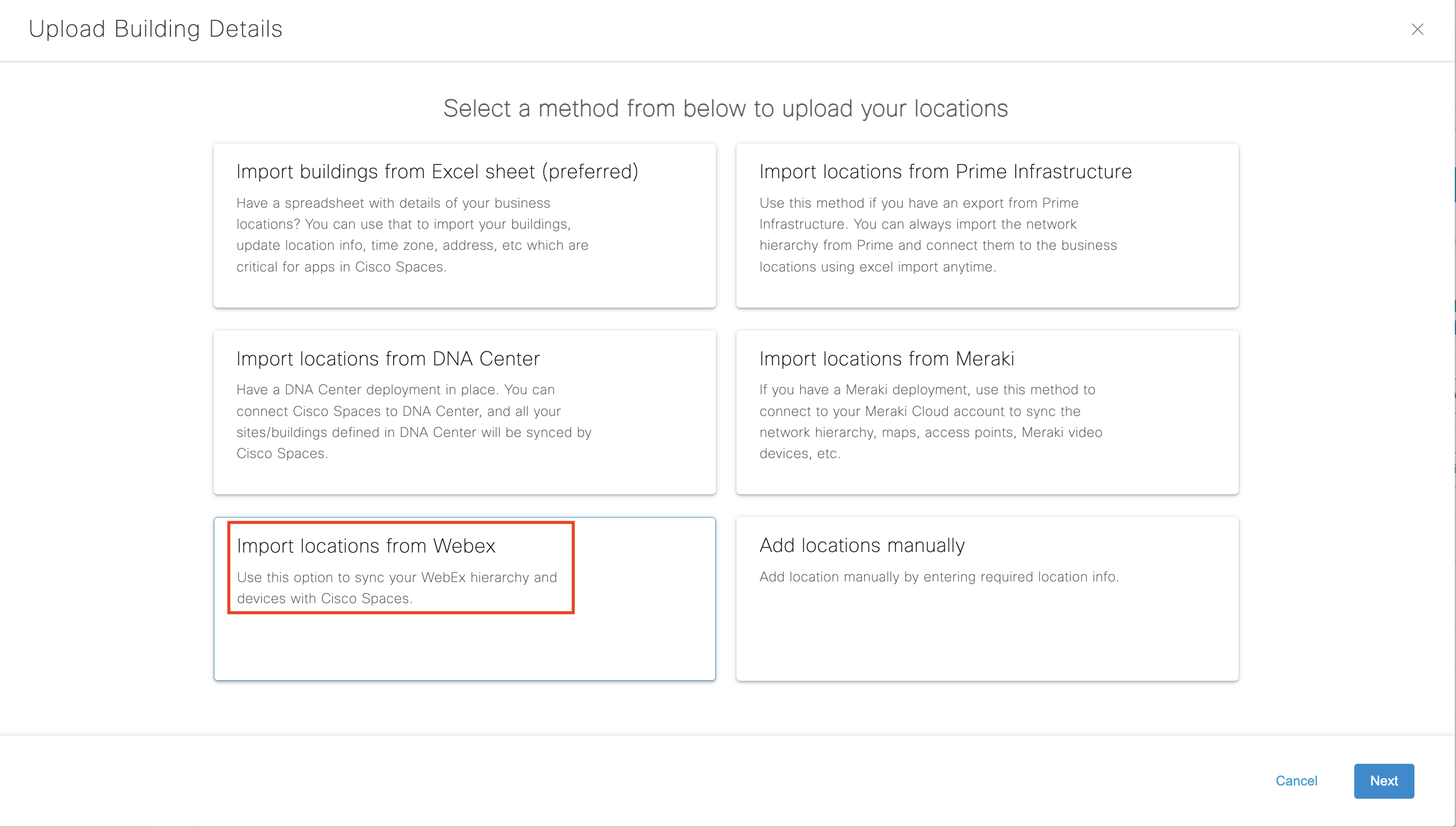 Building, Floor, Meeting Room | Building, Floor, Meeting Room (Desk Pro only) | Building, Floor (Catalyst 9136/66) | Building, Floor, Meeting Room(MT14/15) | ||||