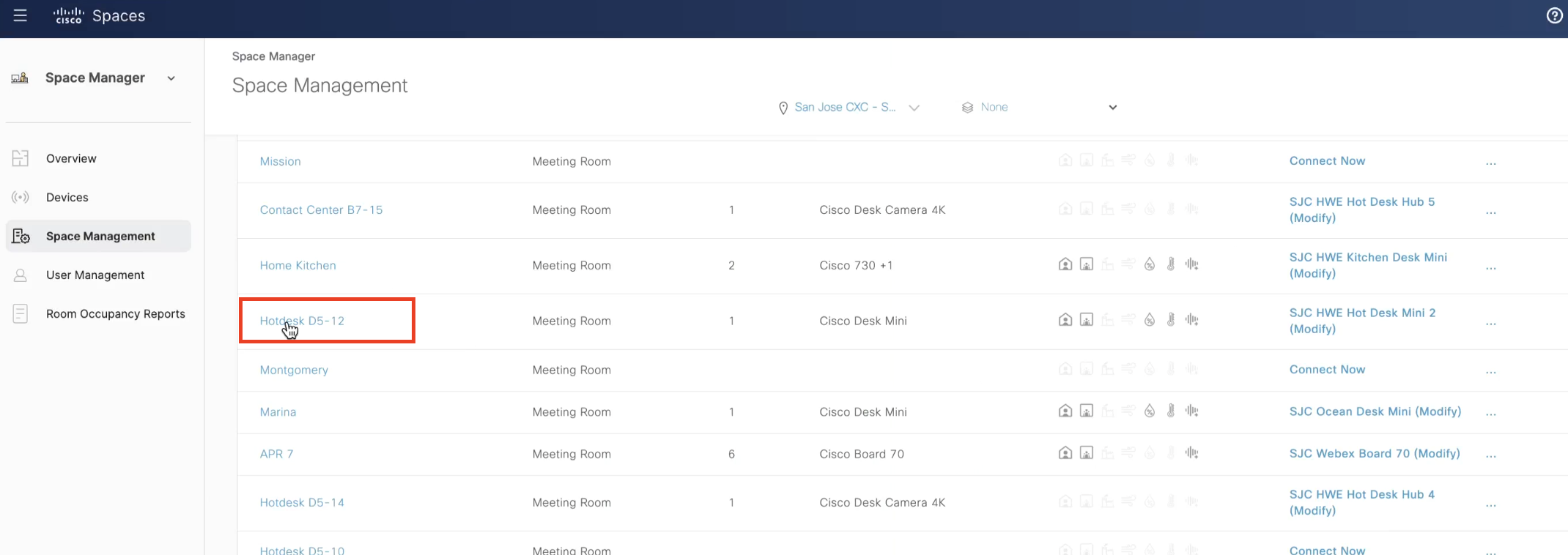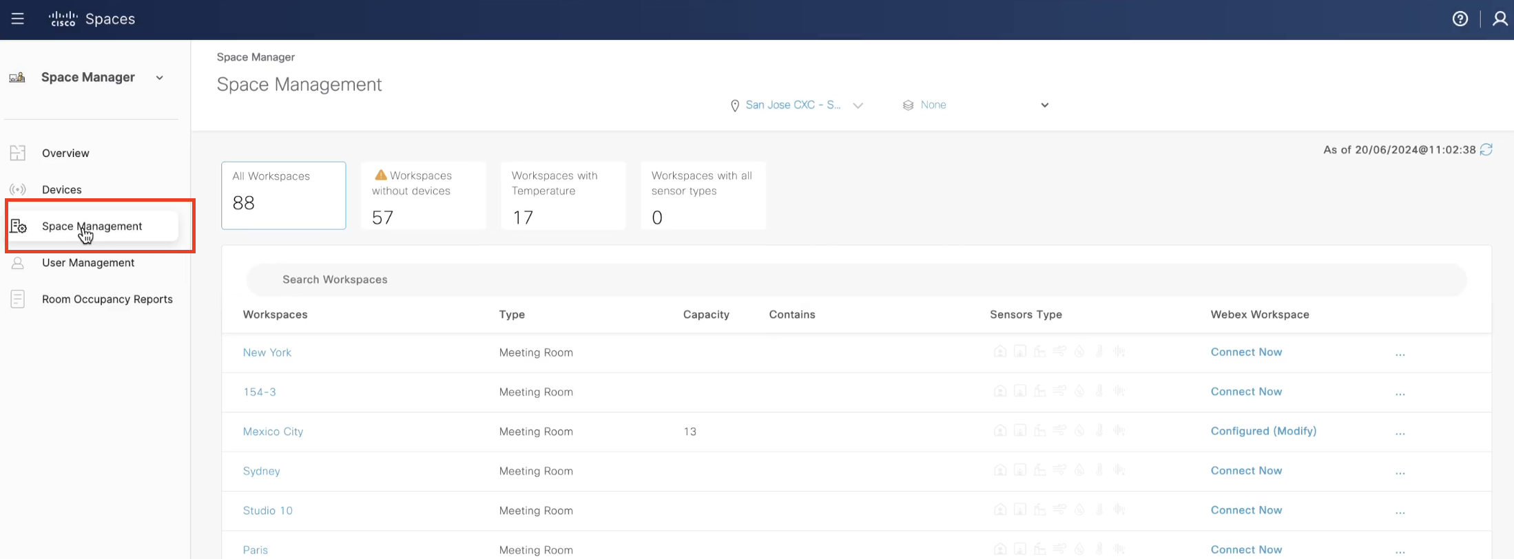 Experience a comprehensive overview of your workplace within a single, real-time view of floor occupancy (and with 24-hour playback). In a captivating 3D virtual environment, visualize and discover how people and things come together in your indoor spaces. Identify gaps in coverage, manage new and existing IoT devices, link Wireless Access Points and Webex devices to workspaces, and much more.