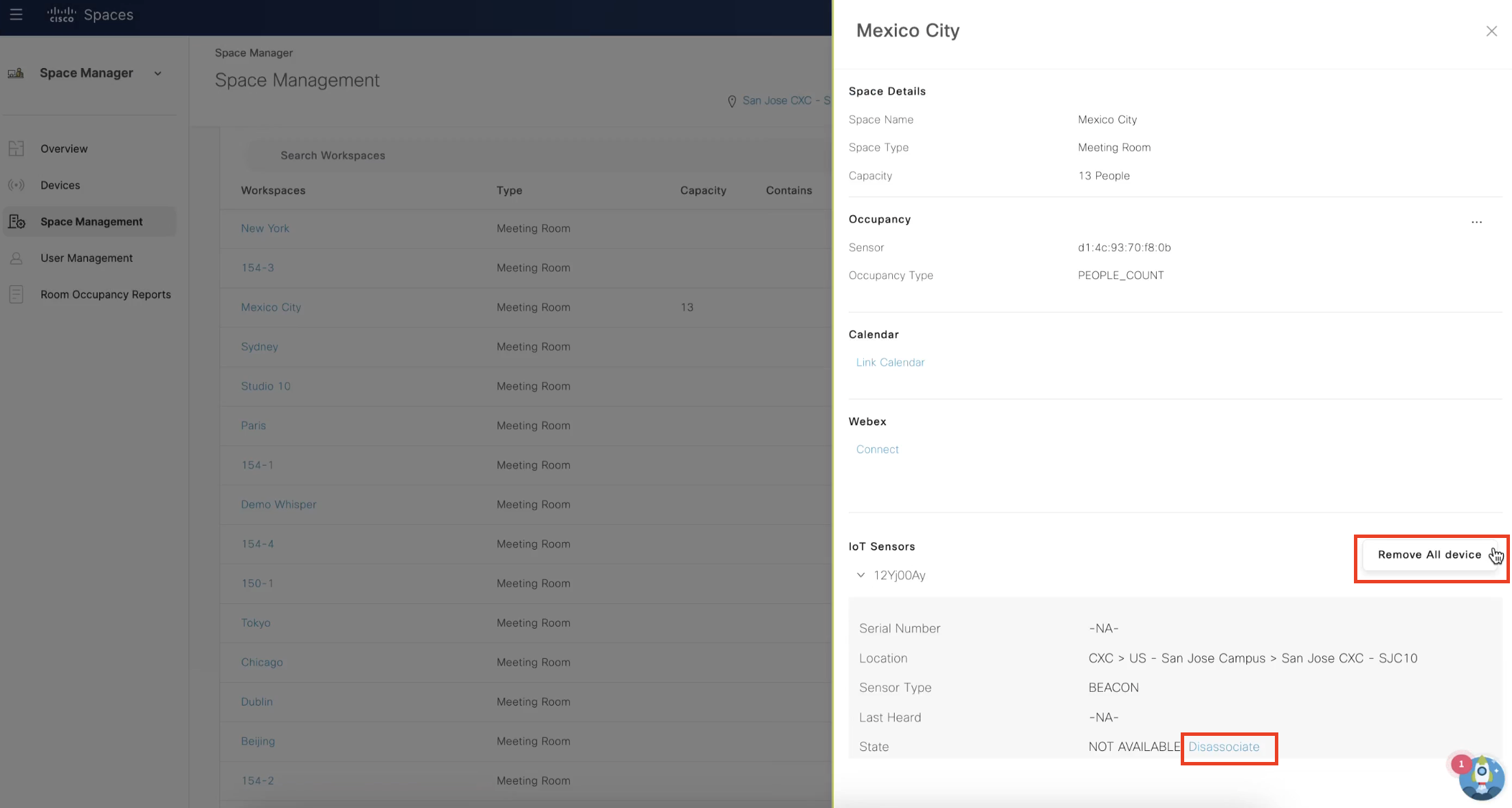 View real-time floor occupancy and sensor details with space management and device assignment tools.