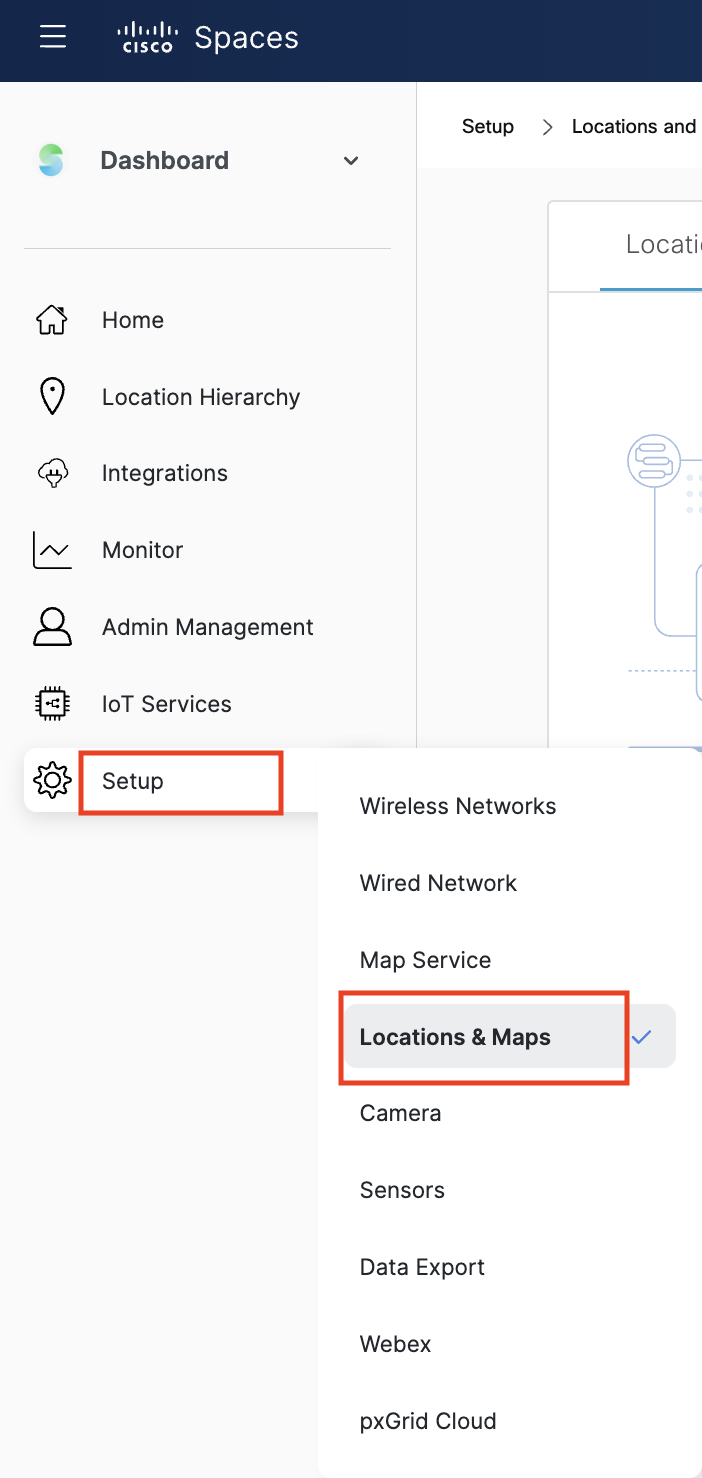 In the Cisco Spaces dashboard, click the Menu icon