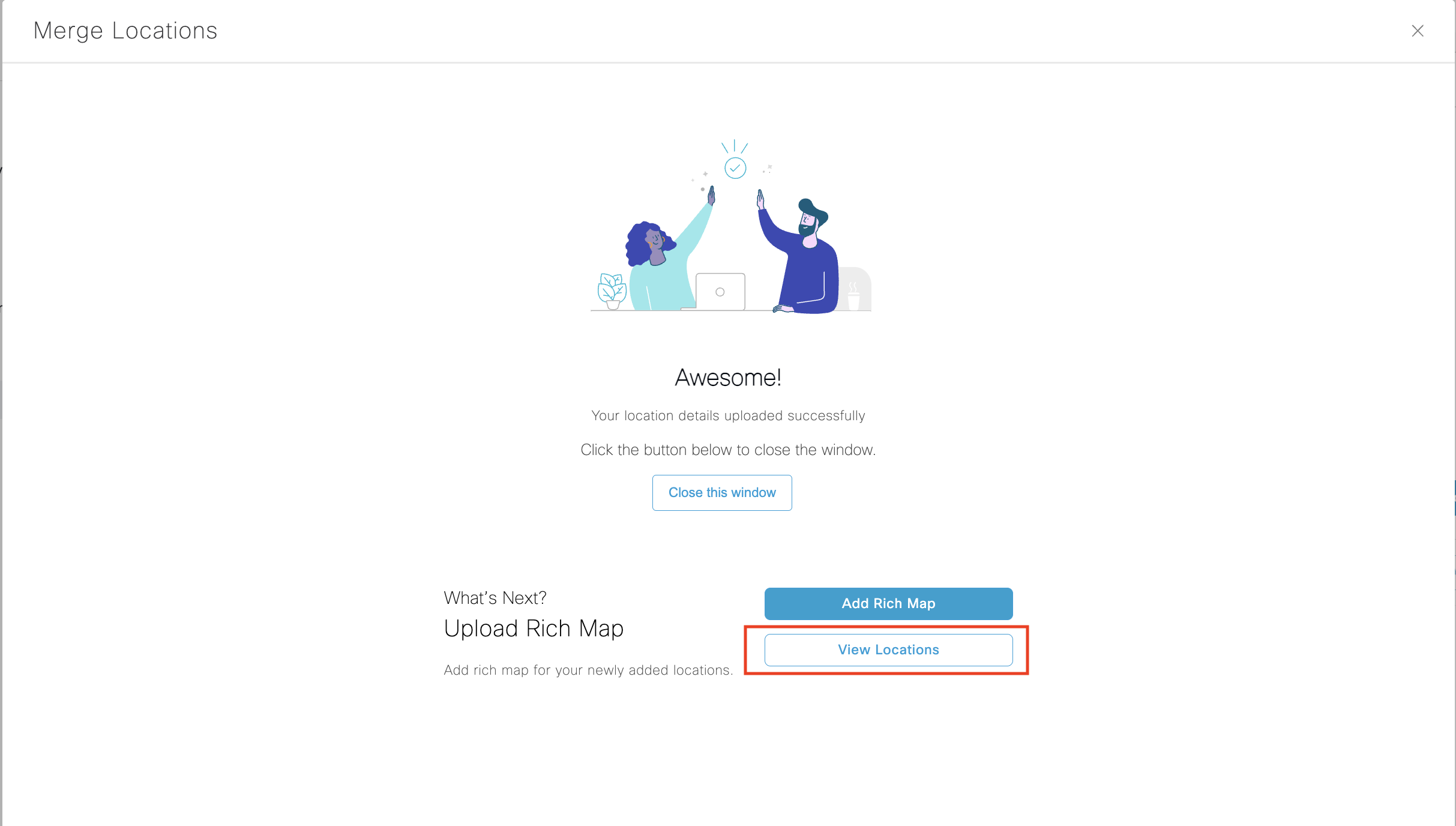 Once the location details have been added successfully Select “View Locations”