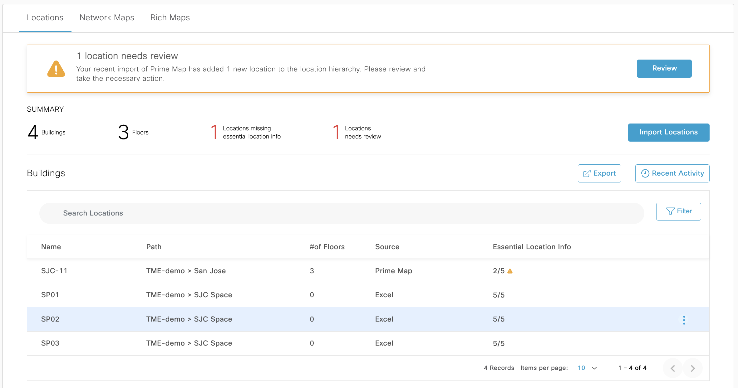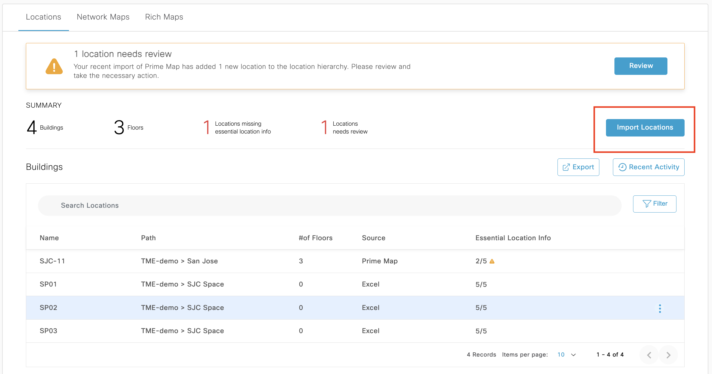Now that the Excel sheet is imported, proceed to sync Network Hierarchy by clicking on “Import Locations”