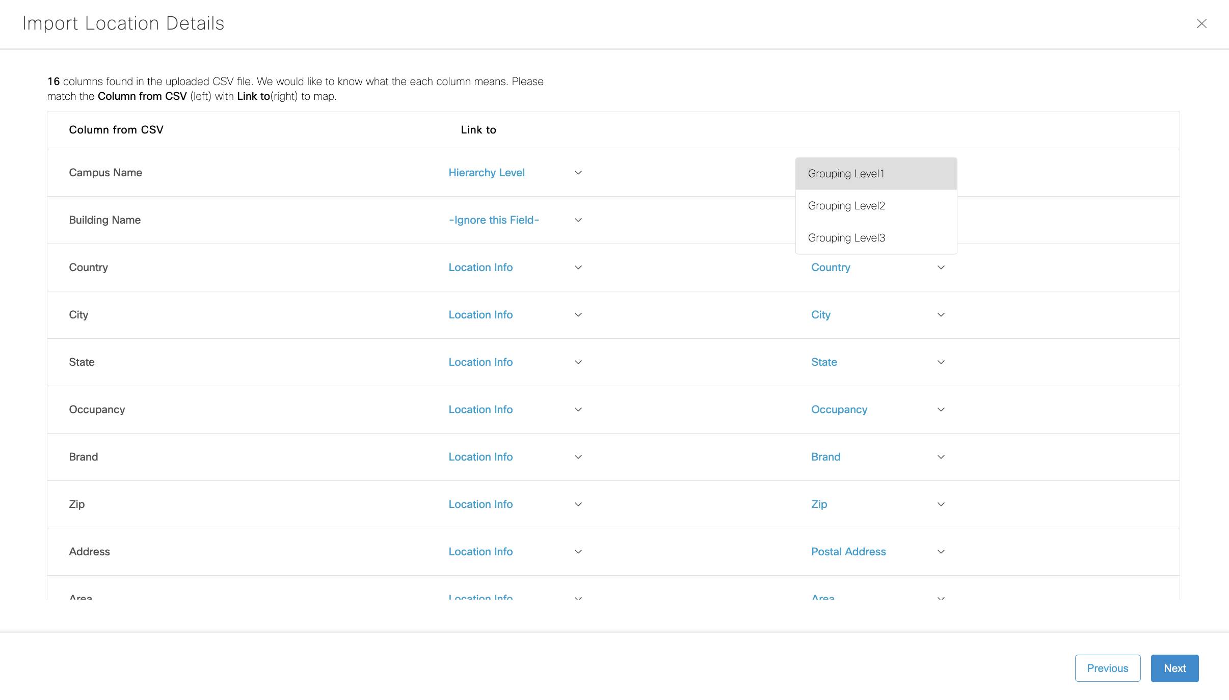 Note: The same “Level Number” cannot exist in the same building. Floors must either be combined or split up at the source (e.g. Webex Control Hub, Catalyst Center, Meraki Dashboard). This metadata has a significant impact on apps such as Wayfinding, Signage, etc.