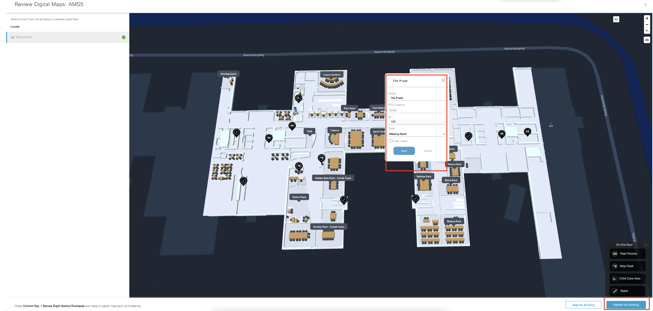 Add/Edit Room Labels. Once everything looks good, select “Publish this building”