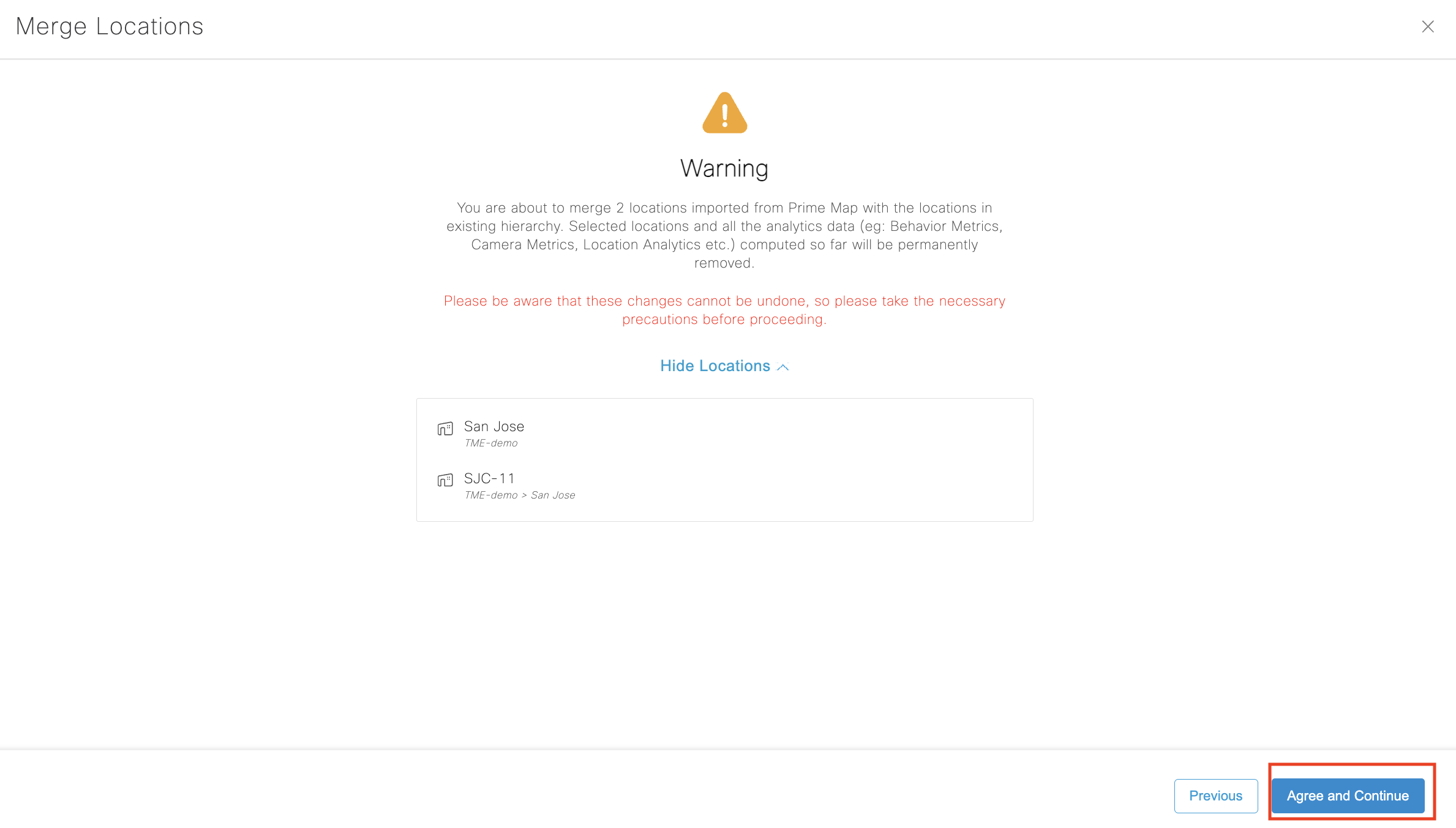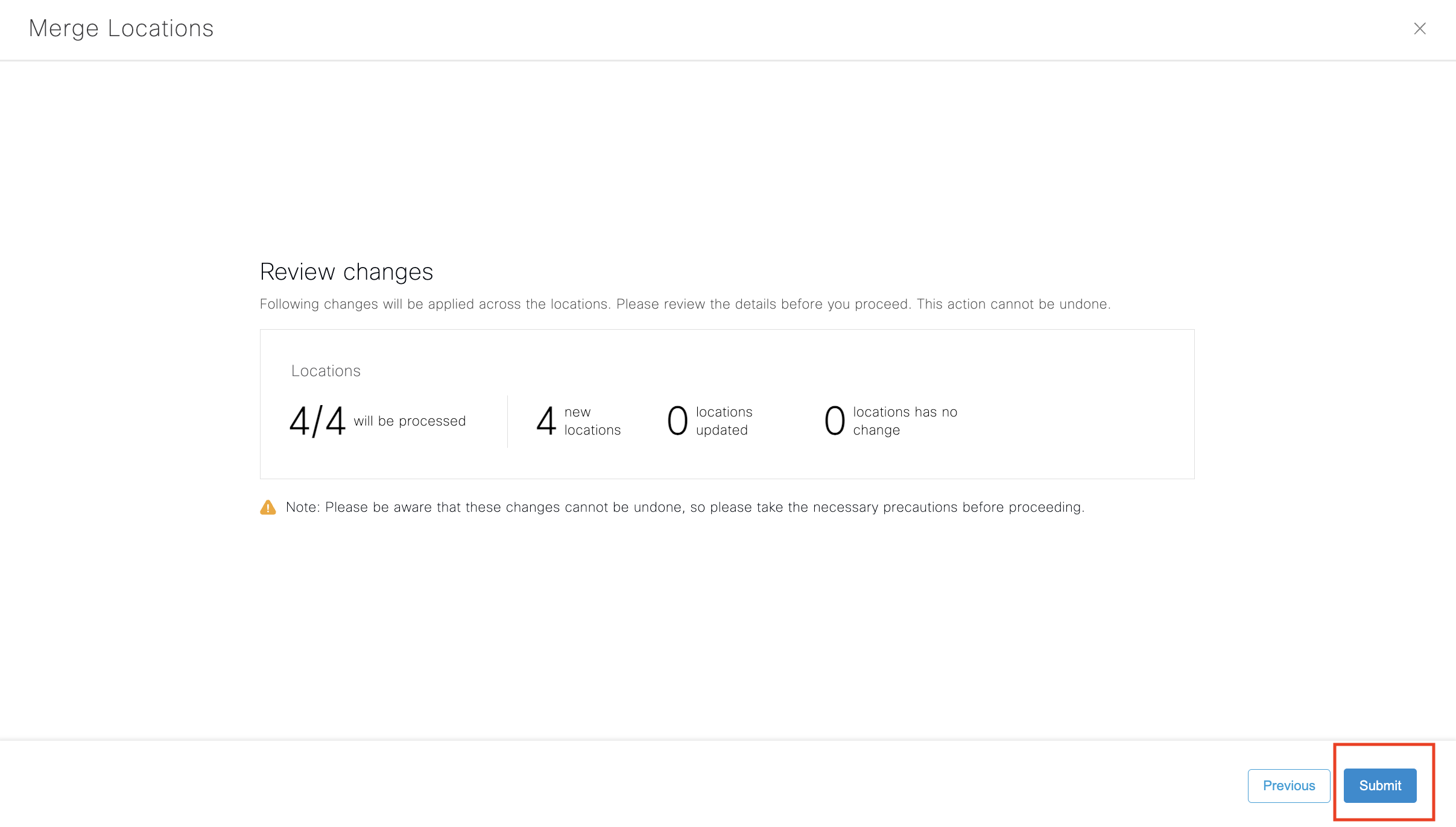 Now that the Excel sheet is imported, proceed to sync Network Hierarchy by clicking on “Import Locations”
