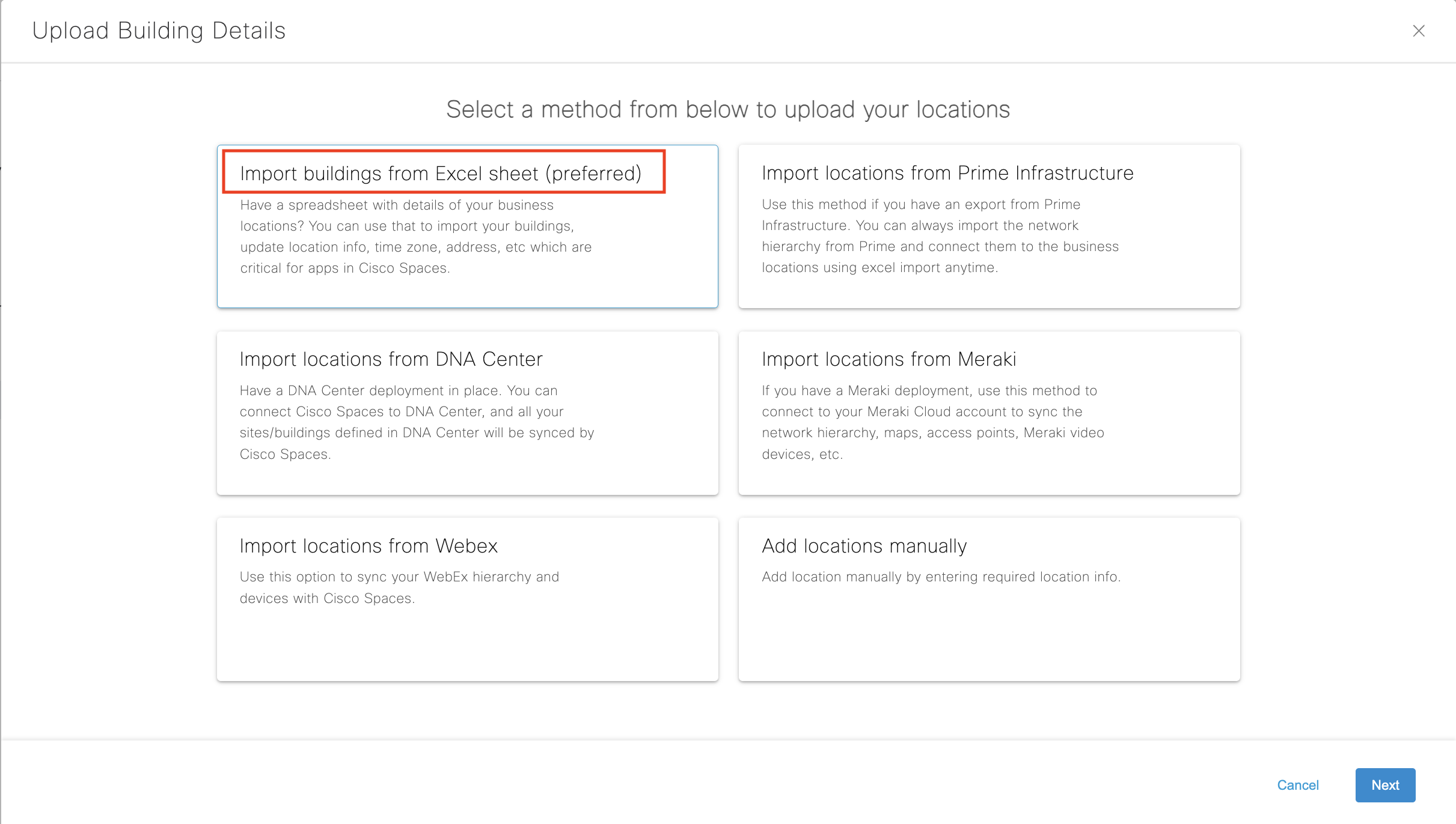 Choose to Import one or more ways to onboard Location Hierarchy from the options below: