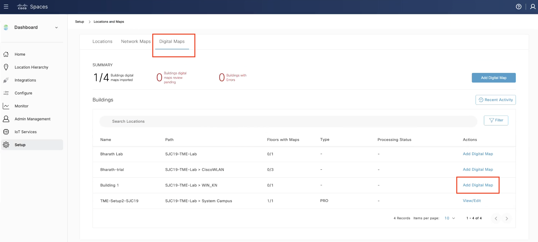 Click on the “Digital Maps” tab. Either search or choose the location of your desired building and Click on “Add Digital Map”.
