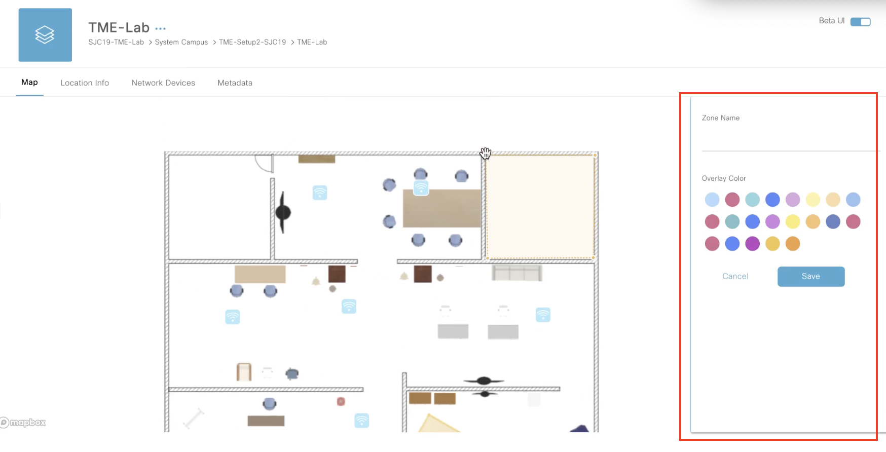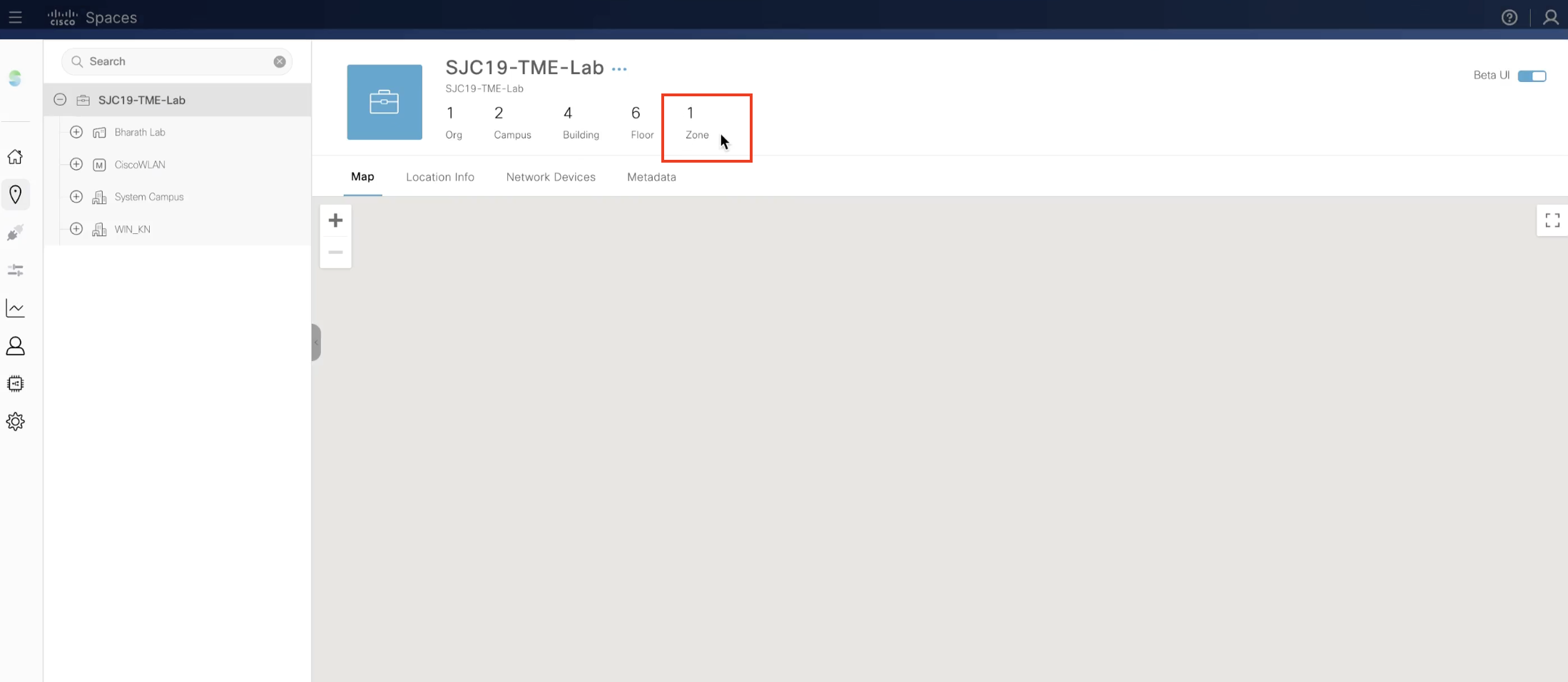 You can create zones on a specific floor map to get granular data in Cisco Spaces applications. These zones are defined in the Location Hierarchy, and can be used to display data in Right Now, Behaviour Metrics, Location Analytics etc.
