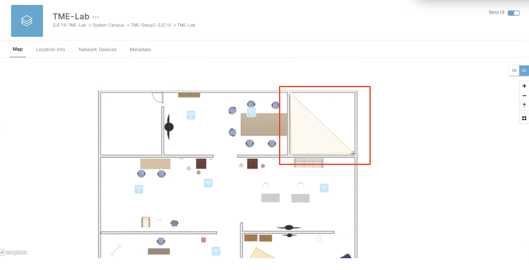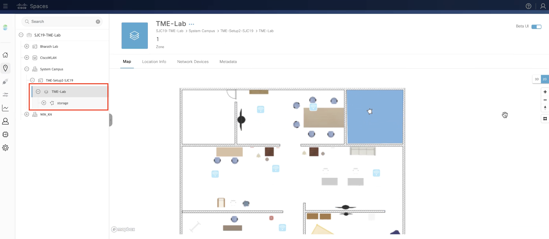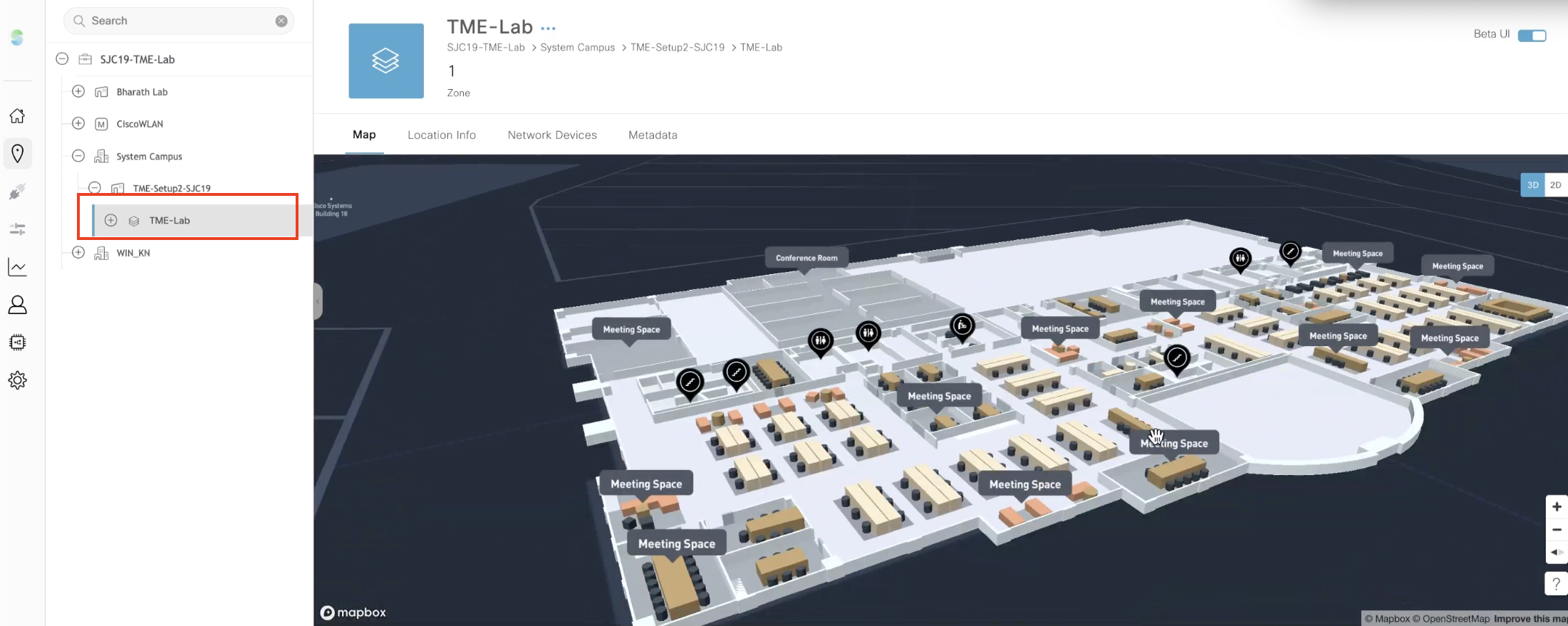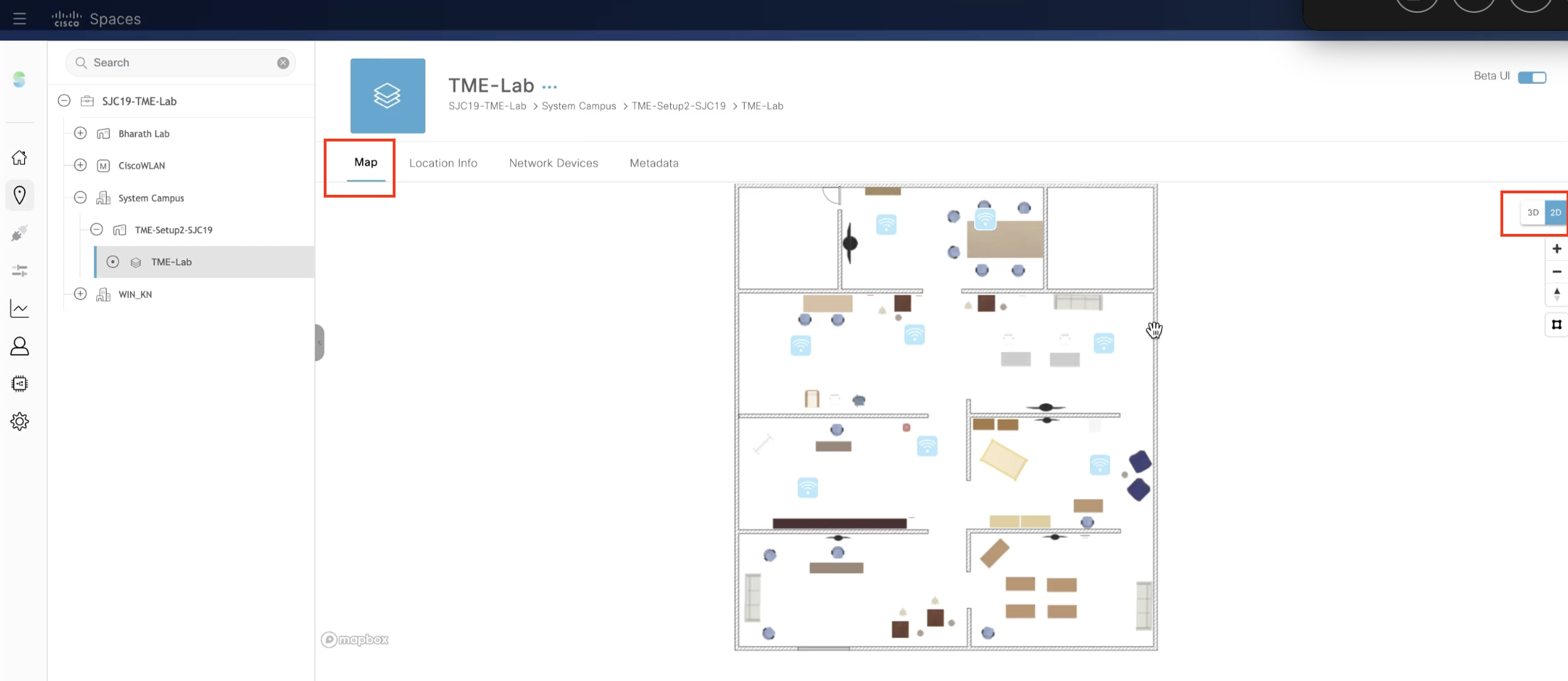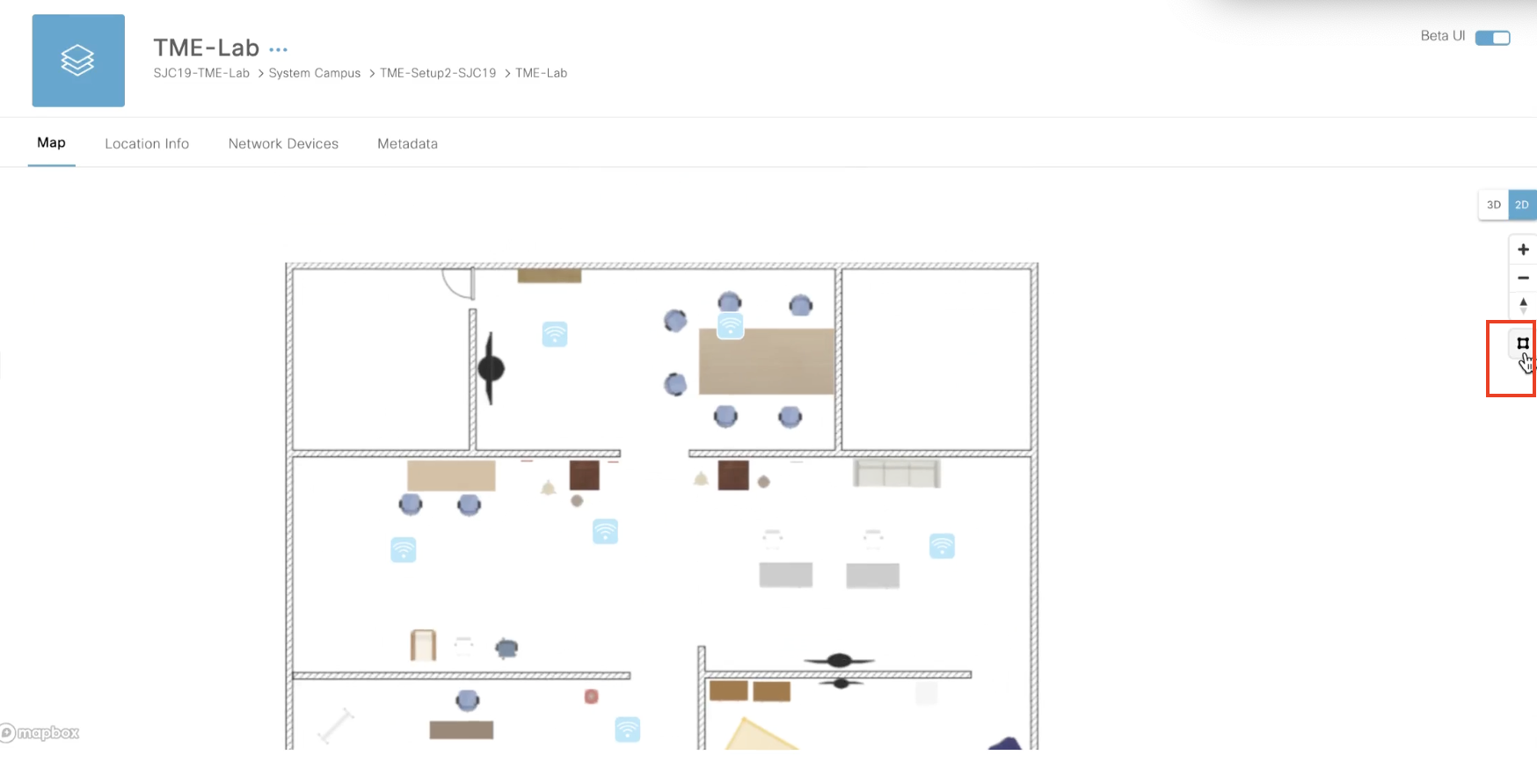 Under the Map tab, the 3D floor map is displayed. Select 2D map on the right panel