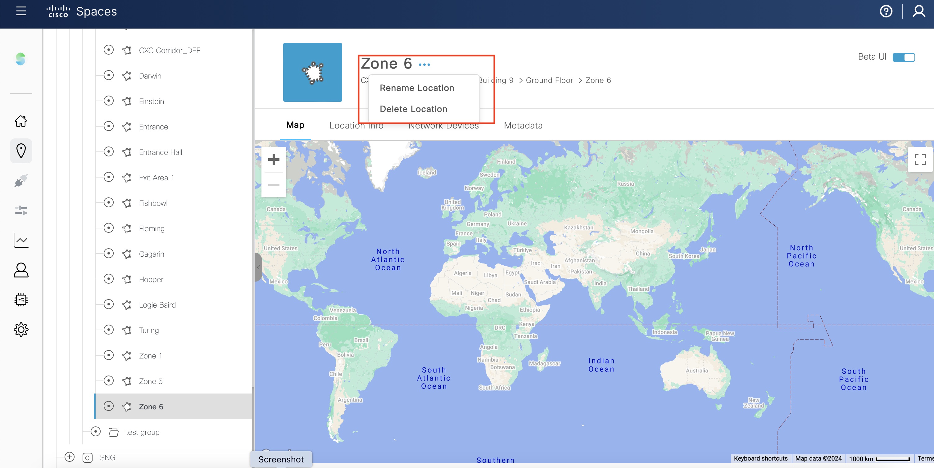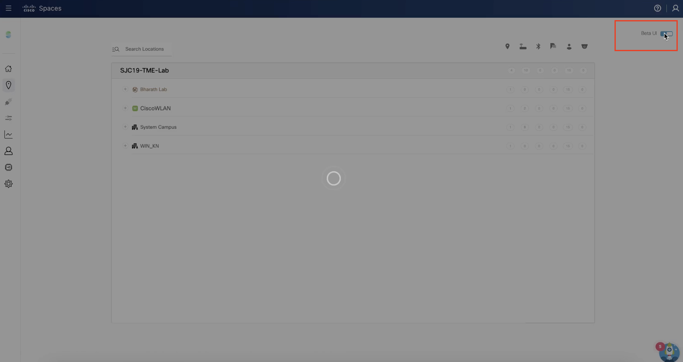 In the Cisco Spaces dashboard, click the Menu icon