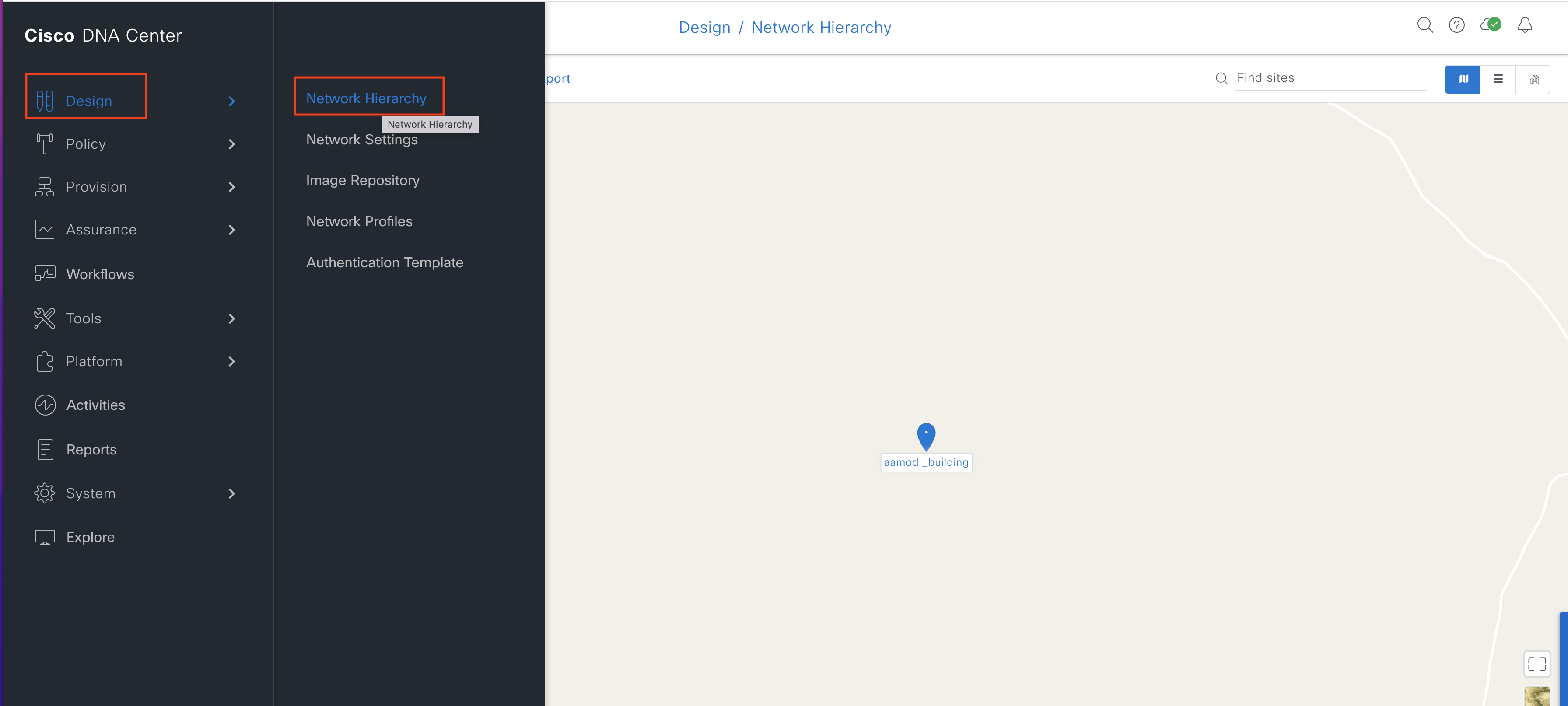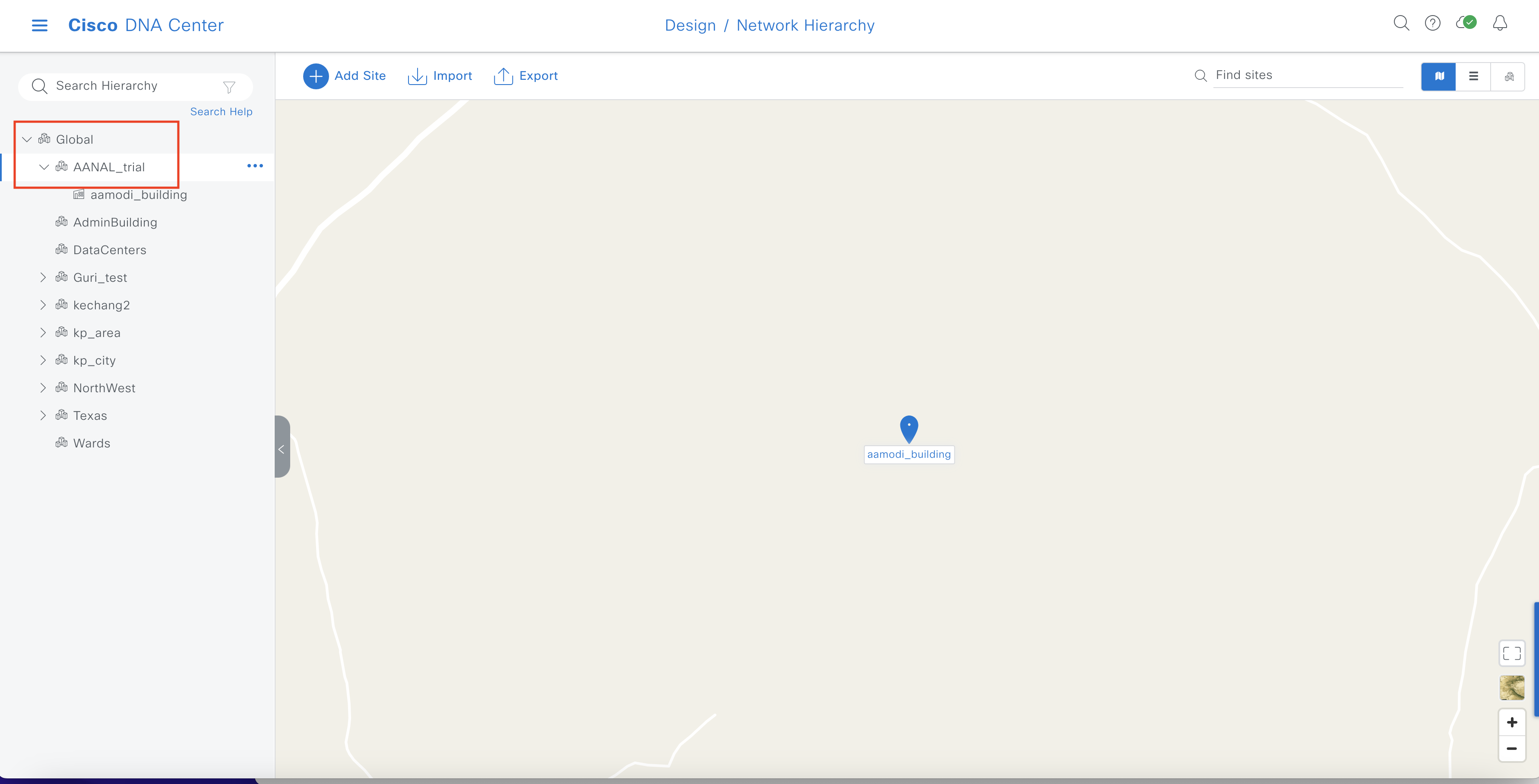 • Locate the location/site that was just synced from DNA Center