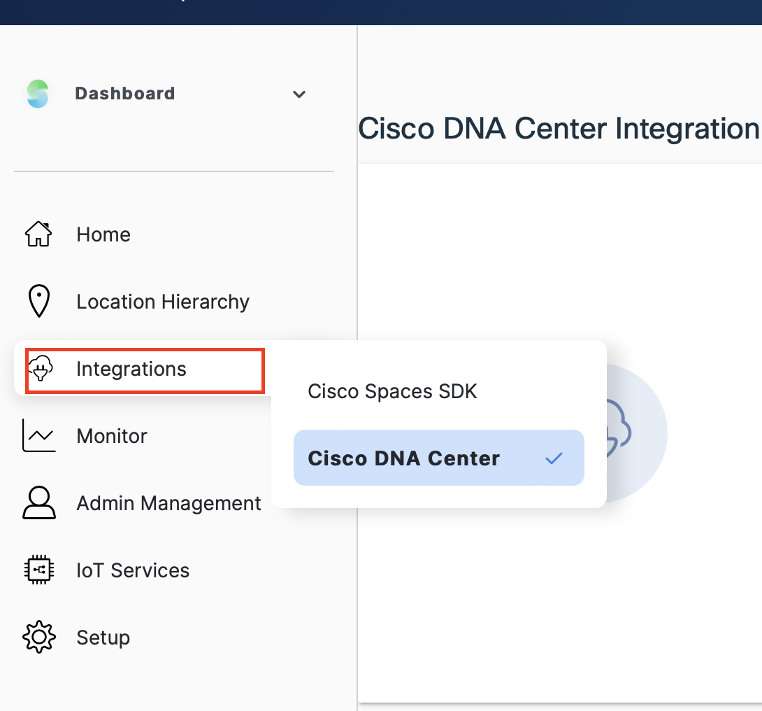 Choose Integrations > DNA Center.