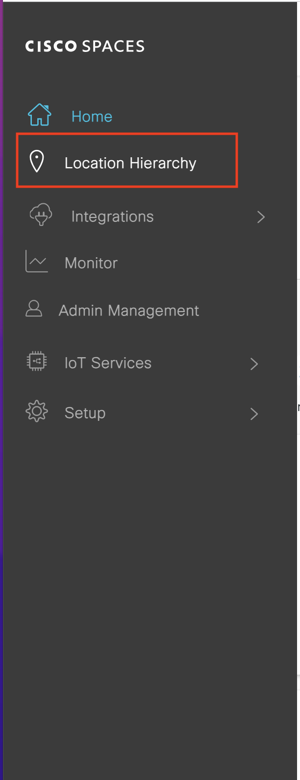• Click on the three-line Menu icon > Location Hierarchy