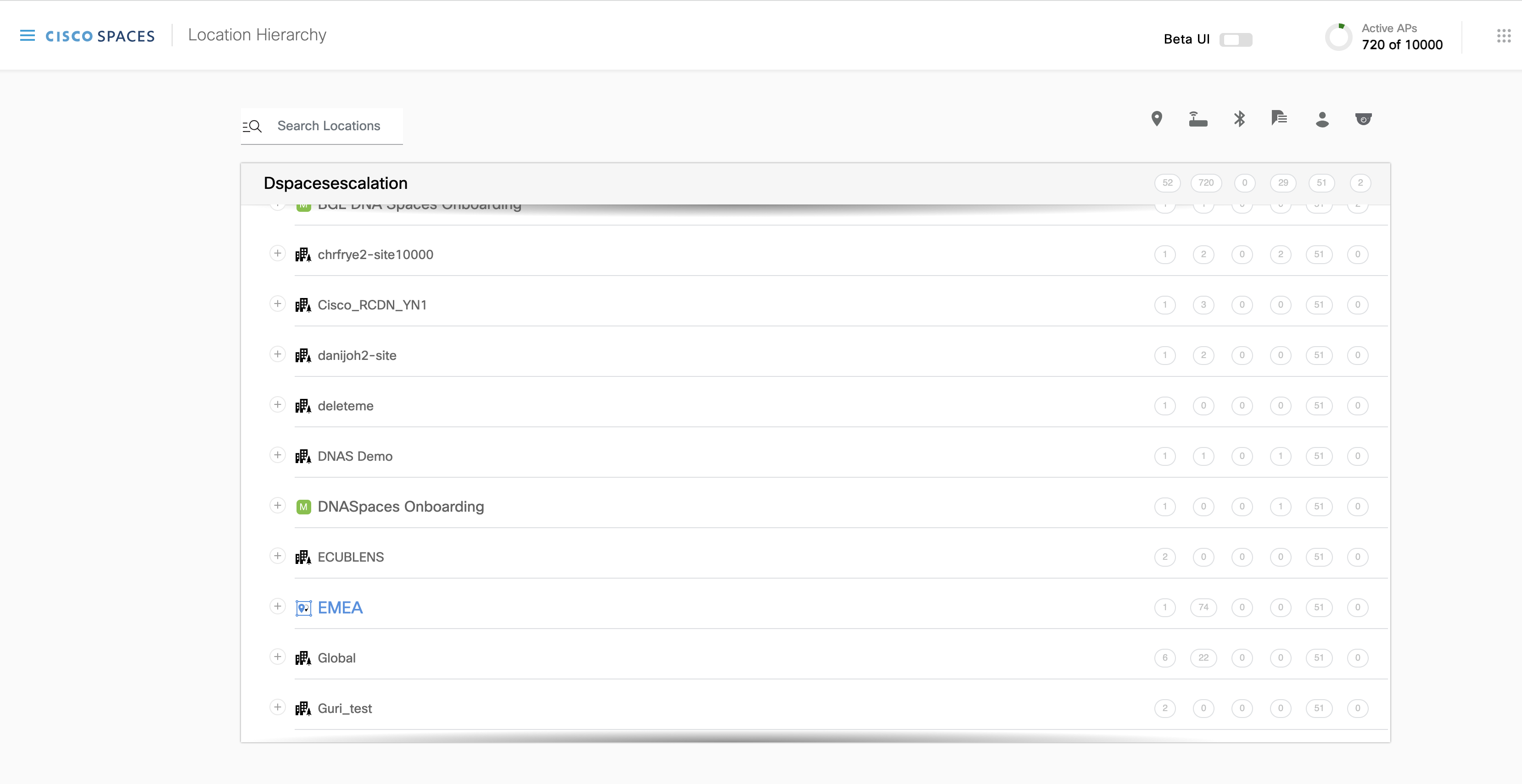 Click the location that you want to monitor (on the left-hand side under Global) using Cisco Spaces