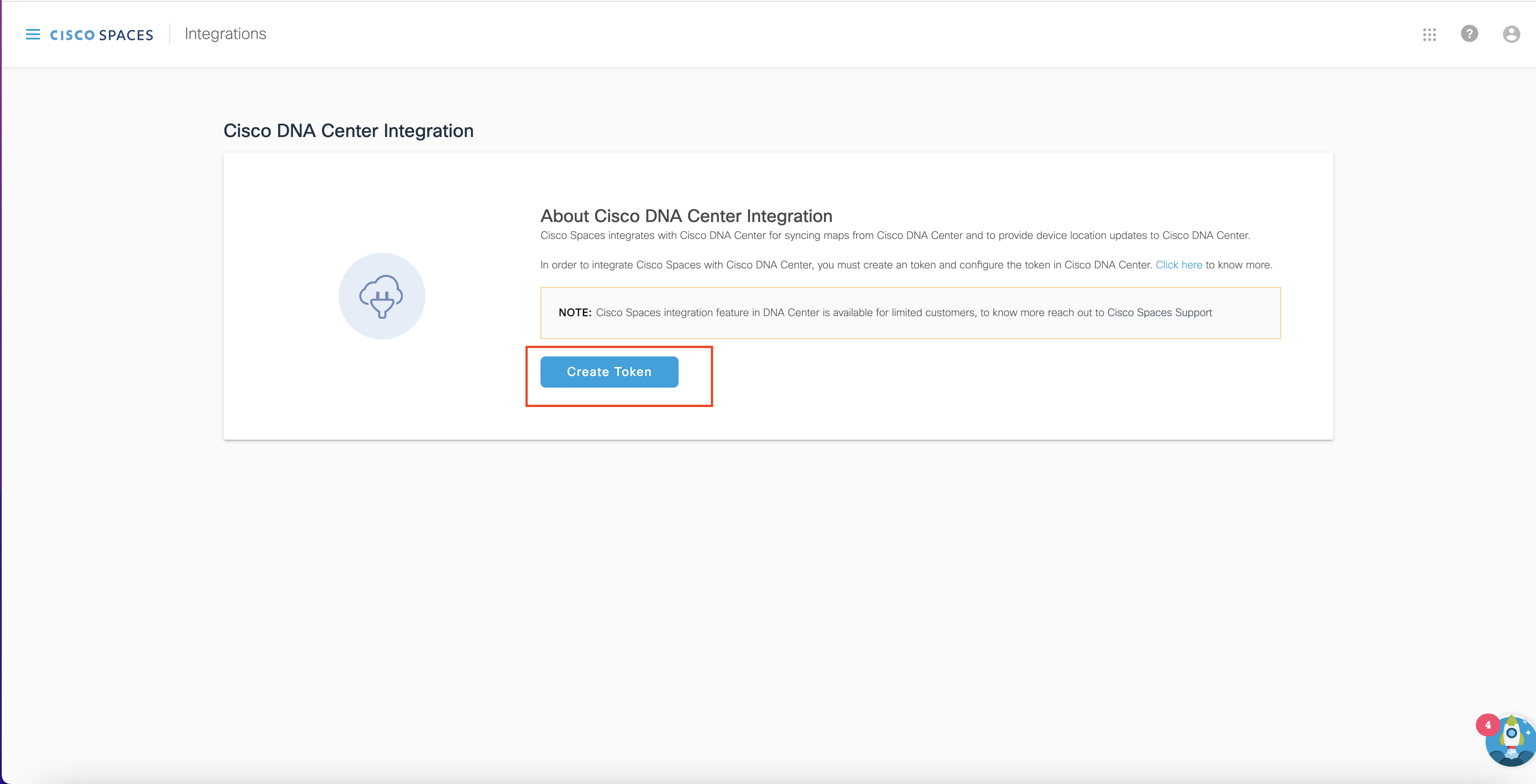 In the DNAC Integration window that appears, click Create Token.